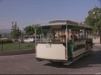 12 - Tour trolleybus on the Upper Lot outside Womphoppers during The A Team Steel episode (still from DVD)